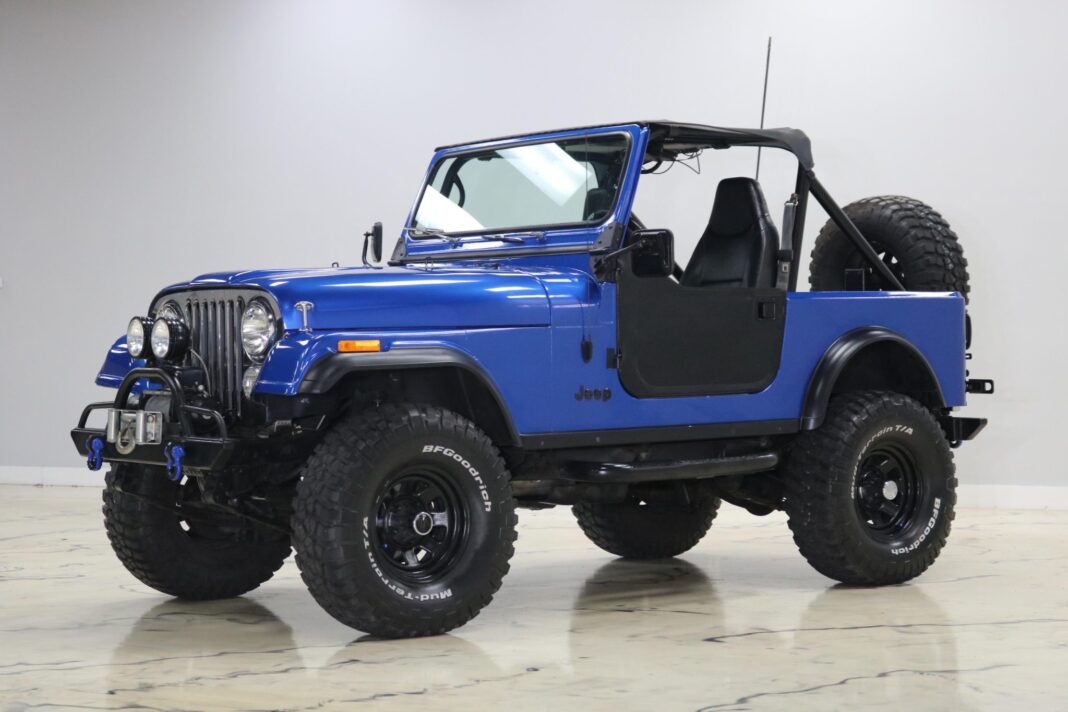 This 1982 Jeep CJ-7 was modified and refreshed under previous ownership, and it features a repaint in metallic blue over a black interior. Power is provided by a replacement 258ci inline-six linked with a five-speed manual transmission and a twin-stick transfer case. Equipment includes 15″ steel wheels, power steering, manually locking front hubs, body and suspension lift kits, a bikini-style soft top, aftermarket bumpers, a front winch, auxiliary lights, tubular side steps, a roll bar, Bestop bucket seats, a locking center console, a Uniden CB radio, and an aftermarket head unit with Bluetooth capability. This CJ-7 is now offered in Georgia at no reserve by the selling dealer with a clean Florida title.