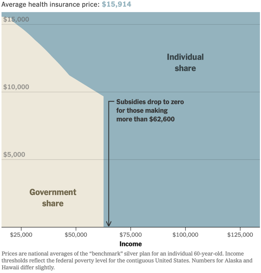 In January, the scale for U.S. healthcare subsidies changed, which reintroduced a cliff. If your household makes even a dollar more past the cutoff, you get zero subsidies. For NYT’s the Upshot, Irena Hwang, Josh Katz, and Margot Sanger-Katz take you through an area chart of the changes and how we got to where we are now.